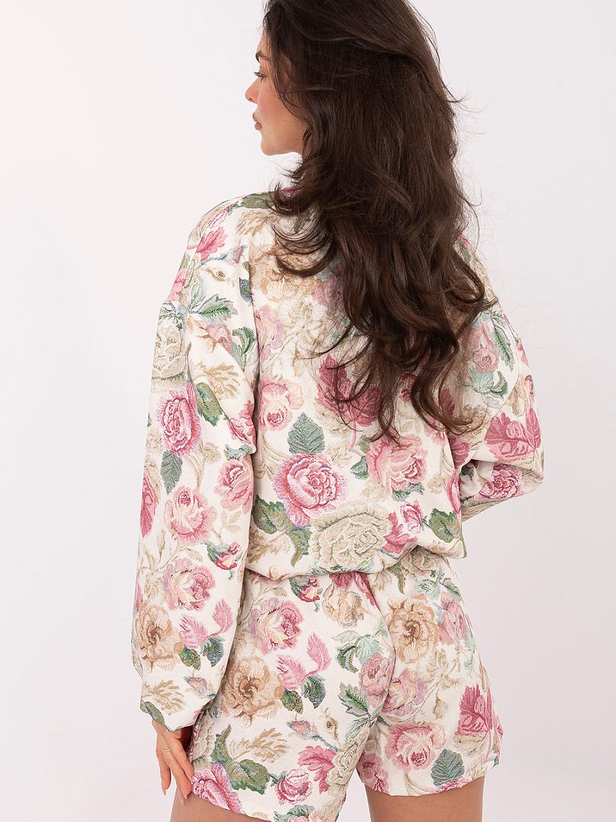 Stylish women’s bomber jacket, perfect for the spring/summer season. Designed in a casual style, it will work great in everyday stylings, adding lightness and a feminine character to them. The model stands out with an eye-catching floral print, which attracts attention and fits in with current trends. The jacket is made of high-quality polyester blend with elastane, making it comfortable, lightweight, and well-fitted to the silhouette. It has no insulation or padding, making it an ideal choice for warmer days. The bomber has a standard length, long, slightly puffy sleeves, and practical slip pockets. The zip closure ensures convenience of use, while the lack of a hood and collar emphasizes its minimalist, modern character. Additional lining increases wearing comfort and finishing aesthetics. It is an excellent proposition for women who value comfort and style, and it goes well with both jeans and dresses or skirts.