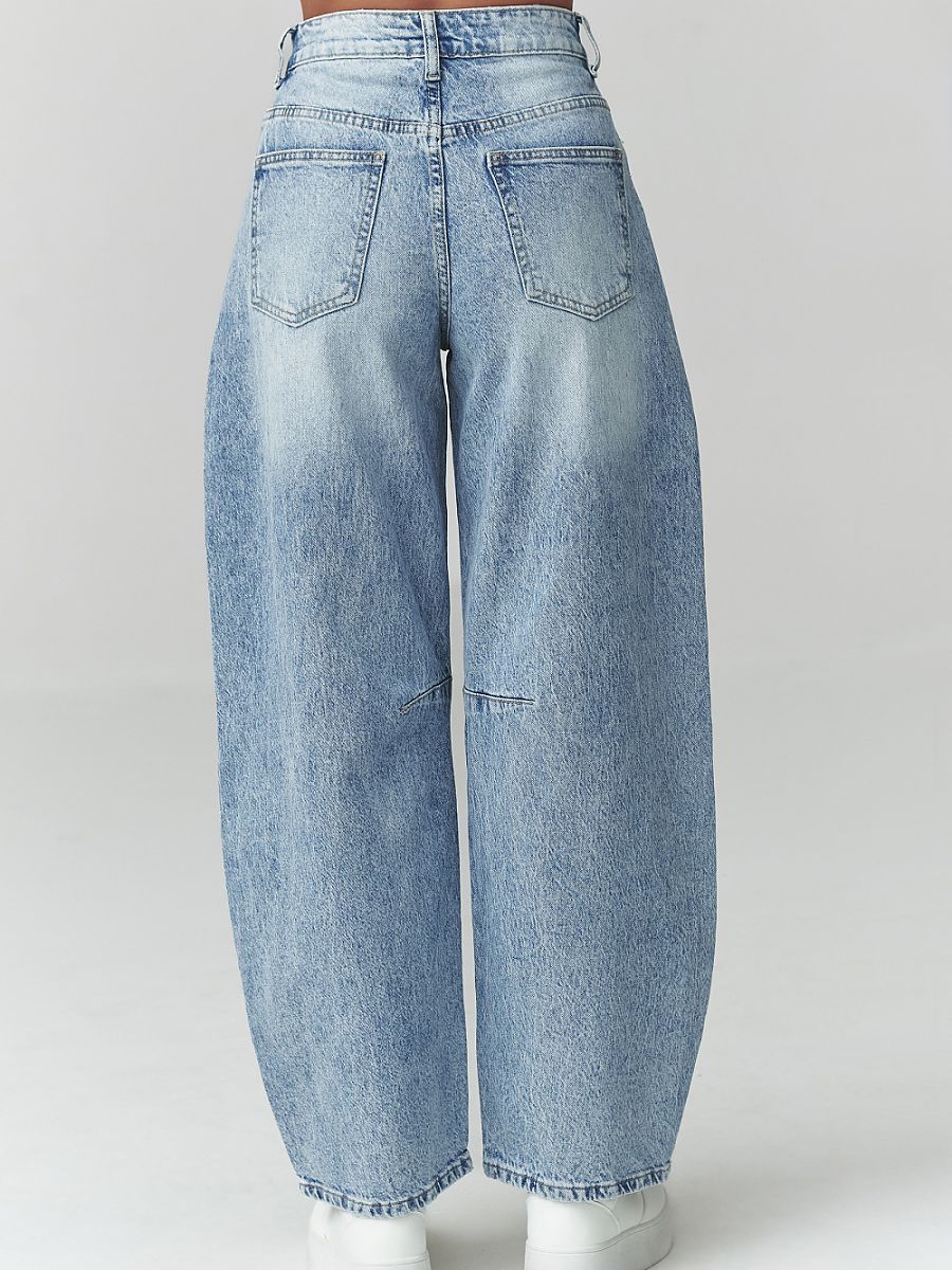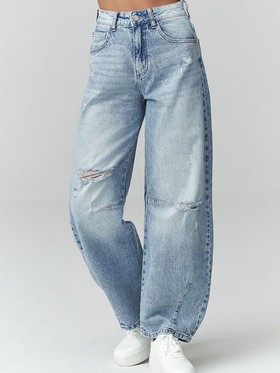 High-Waist Distressed Balloon Jeans Blue